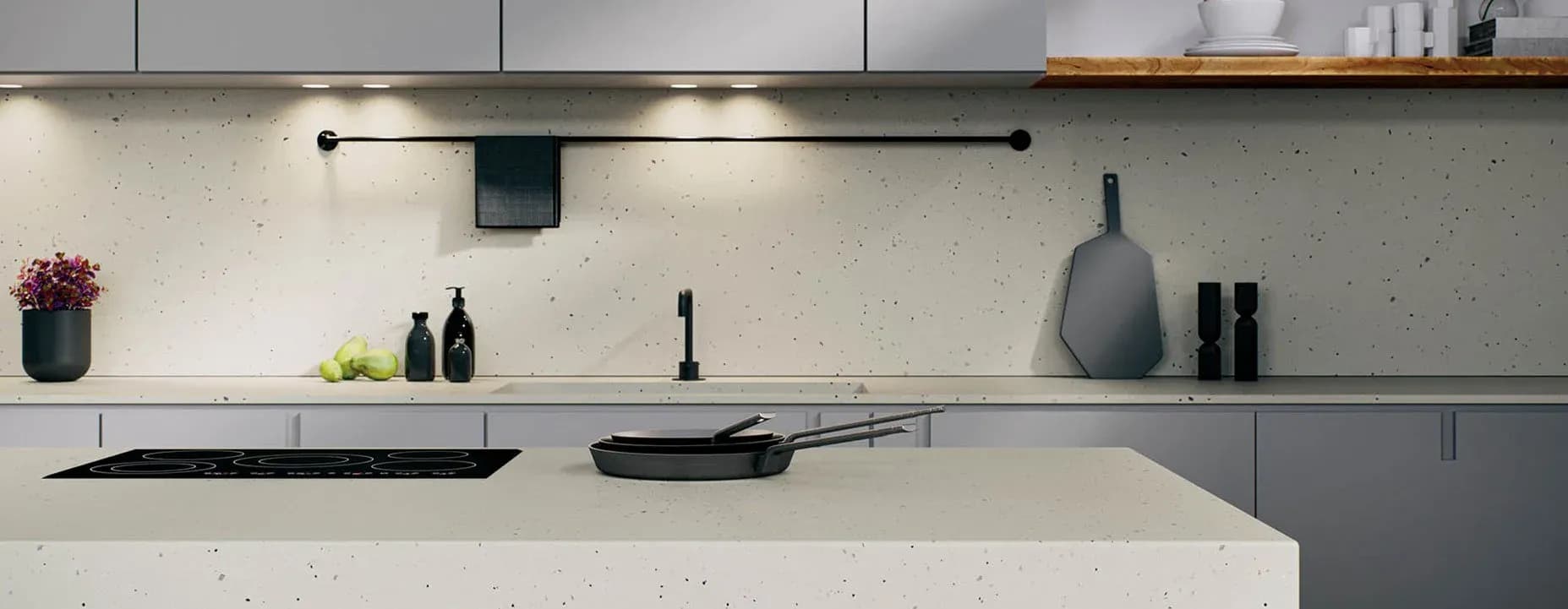 Caesarstone is a beautiful engineered quartz stone which comprises approximately 93% natural quartz. Practical, durable and attractive, it has significant advantages over natural stone and other surfacing materials due to its superior strength and quality. Caesarstone is ideal for kitchen worktops, kitchen countertops, bathroom countertops, bathroom vanity units and quartz tiles. Every Caesarstone quartz worktop surface comes with a comprehensive 25 year guarantee to provide further peace of mind. Caesarstone is one of the most innovative quartz worktop manufacturers. We love the quality of the natural-stone alternatives. Ever since the ground-breaking London Grey, we have come to expect the very best, most natural-looking marble, limestone and travertine alternatives from the Israeli manufacturer. Slab sizes range from standard to jumbo Non-porous Clean with regular detergents No sealing or waxing Heat resistant