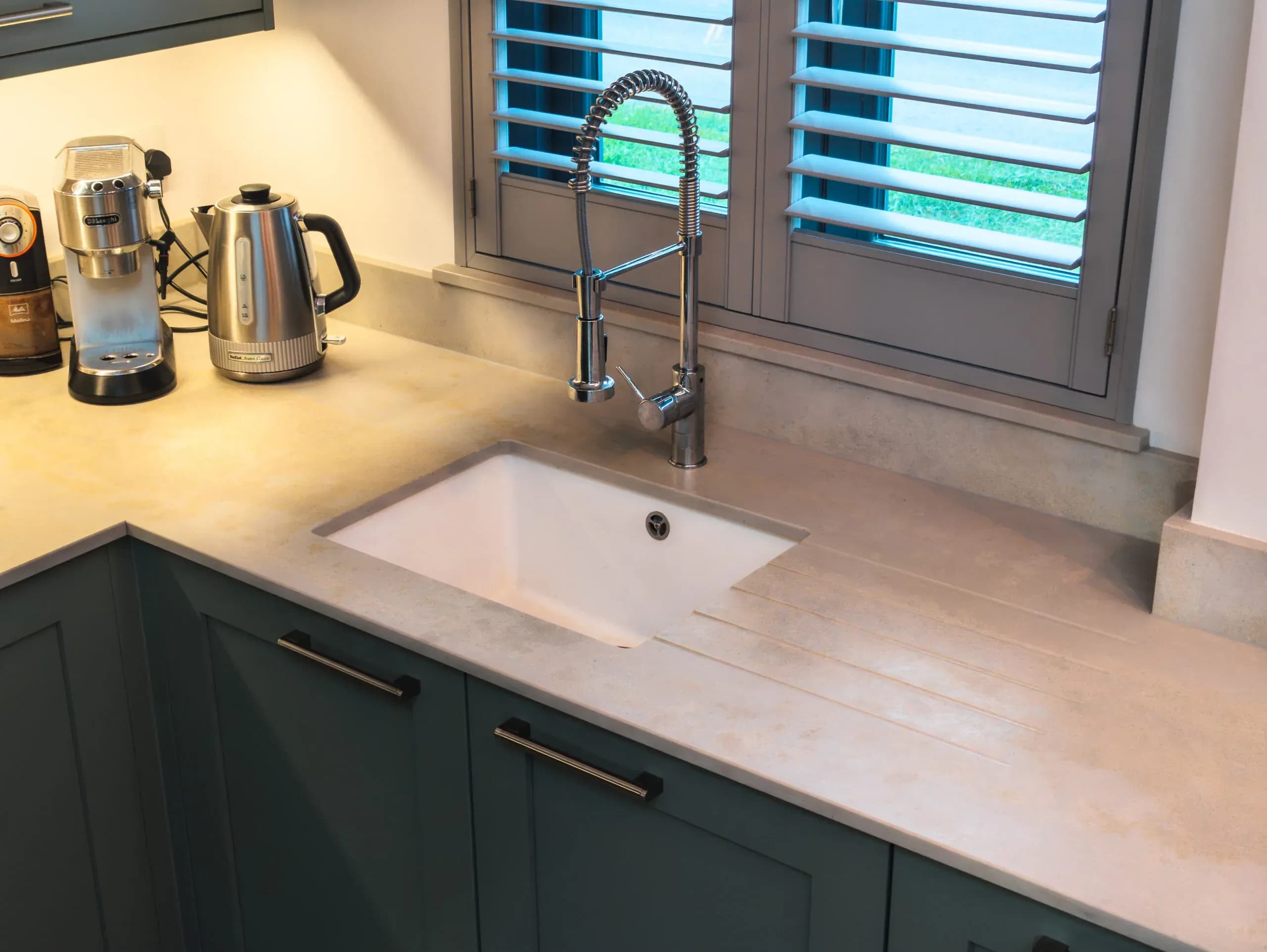 Caesarstone is a beautiful engineered quartz stone which comprises approximately 93% natural quartz. Practical, durable and attractive, it has significant advantages over natural stone and other surfacing materials due to its superior strength and quality. Caesarstone is ideal for kitchen worktops, kitchen countertops, bathroom countertops, bathroom vanity units and quartz tiles. Every Caesarstone quartz worktop surface comes with a comprehensive 25 year guarantee to provide further peace of mind. Caesarstone is one of the most innovative quartz worktop manufacturers. We love the quality of the natural-stone alternatives. Ever since the ground-breaking London Grey, we have come to expect the very best, most natural-looking marble, limestone and travertine alternatives from the Israeli manufacturer. Slab sizes range from standard to jumbo Non-porous Clean with regular detergents No sealing or waxing Heat resistant